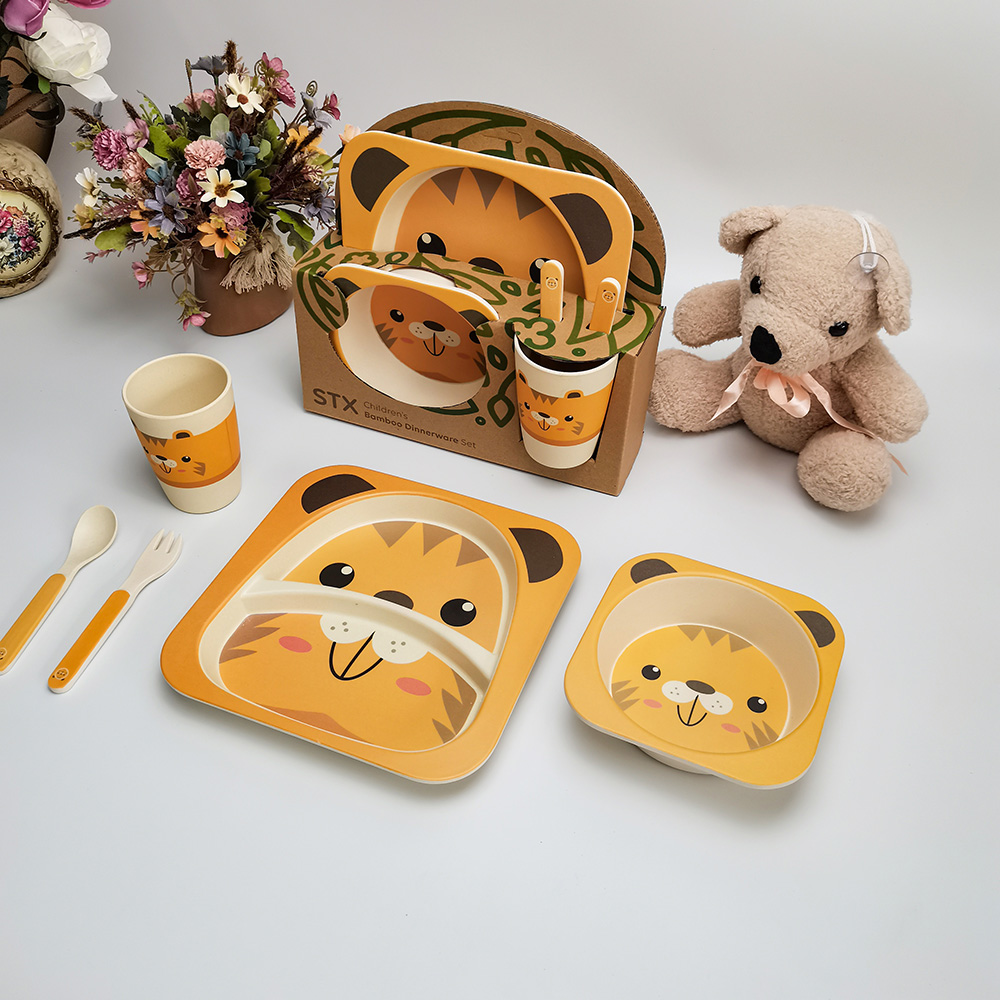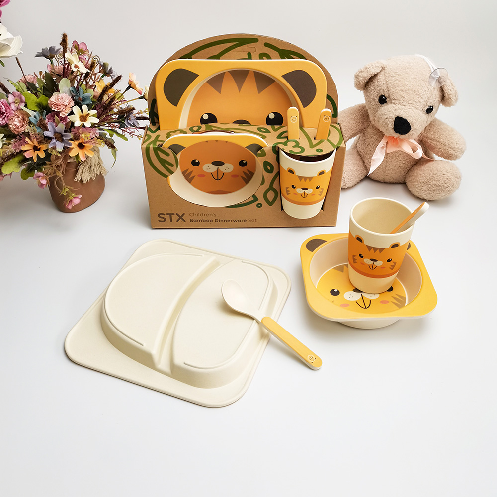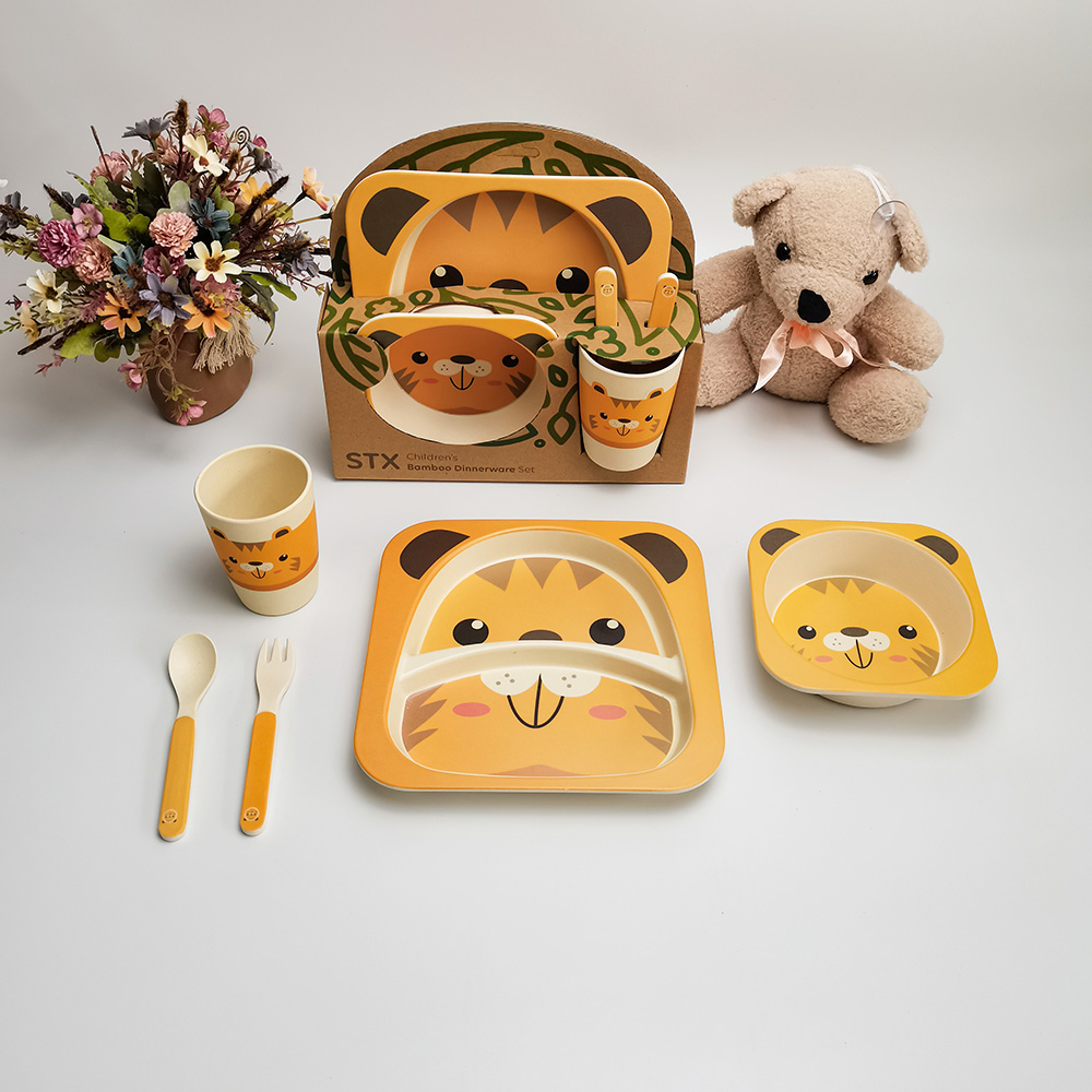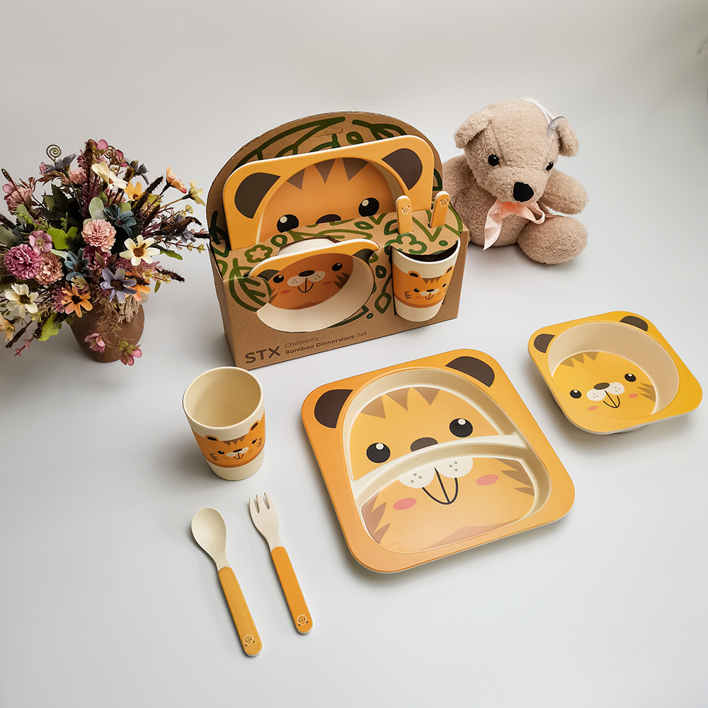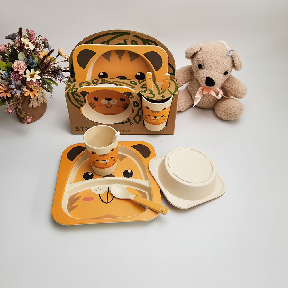 Domicile / Produit / Vaisselle pour enfants / Ensemble de vaisselle pour enfants en fibre de bambou à motif de tigre respectueux de l'environnement pour enfants dans une boîte-cadeau