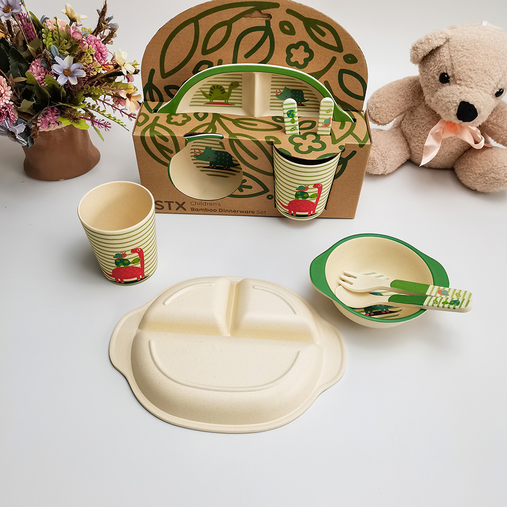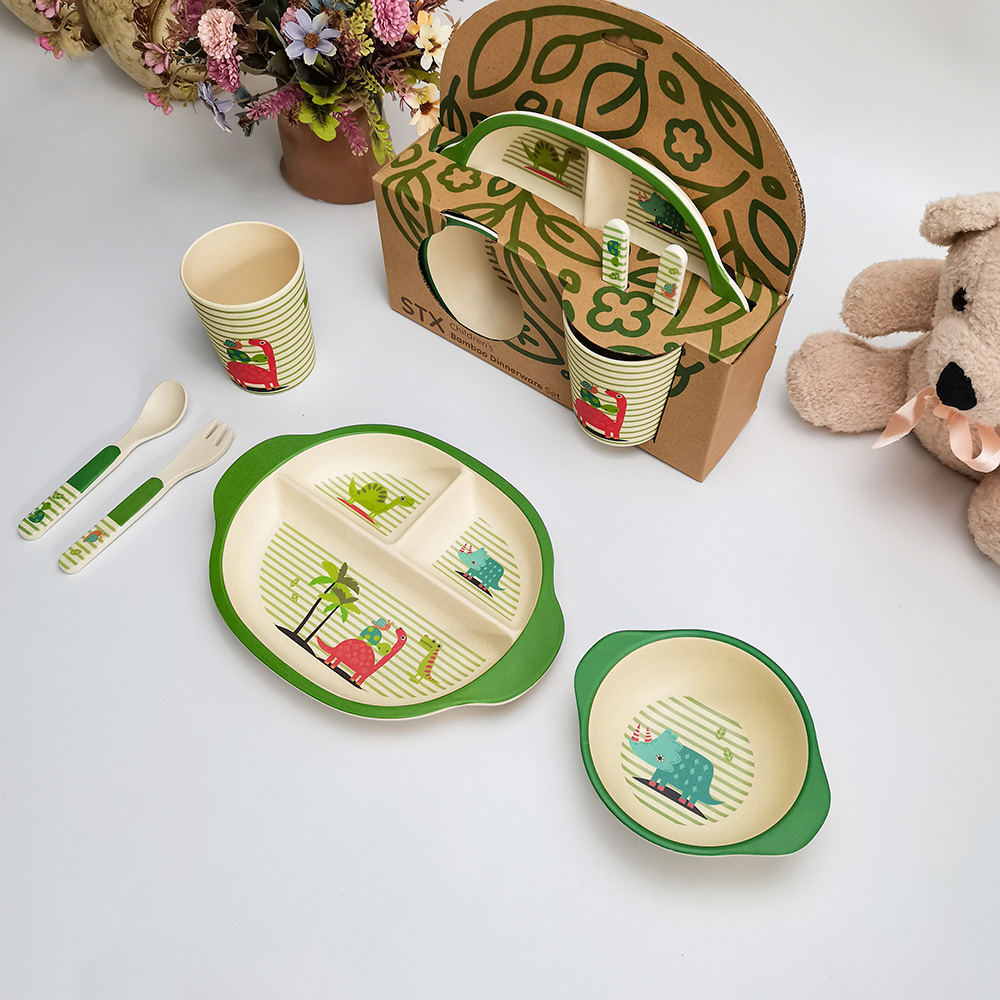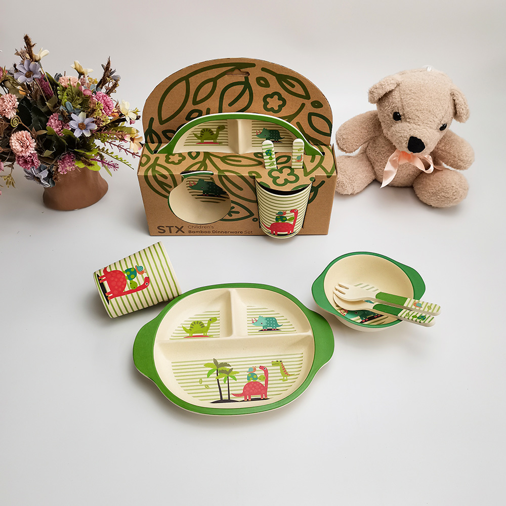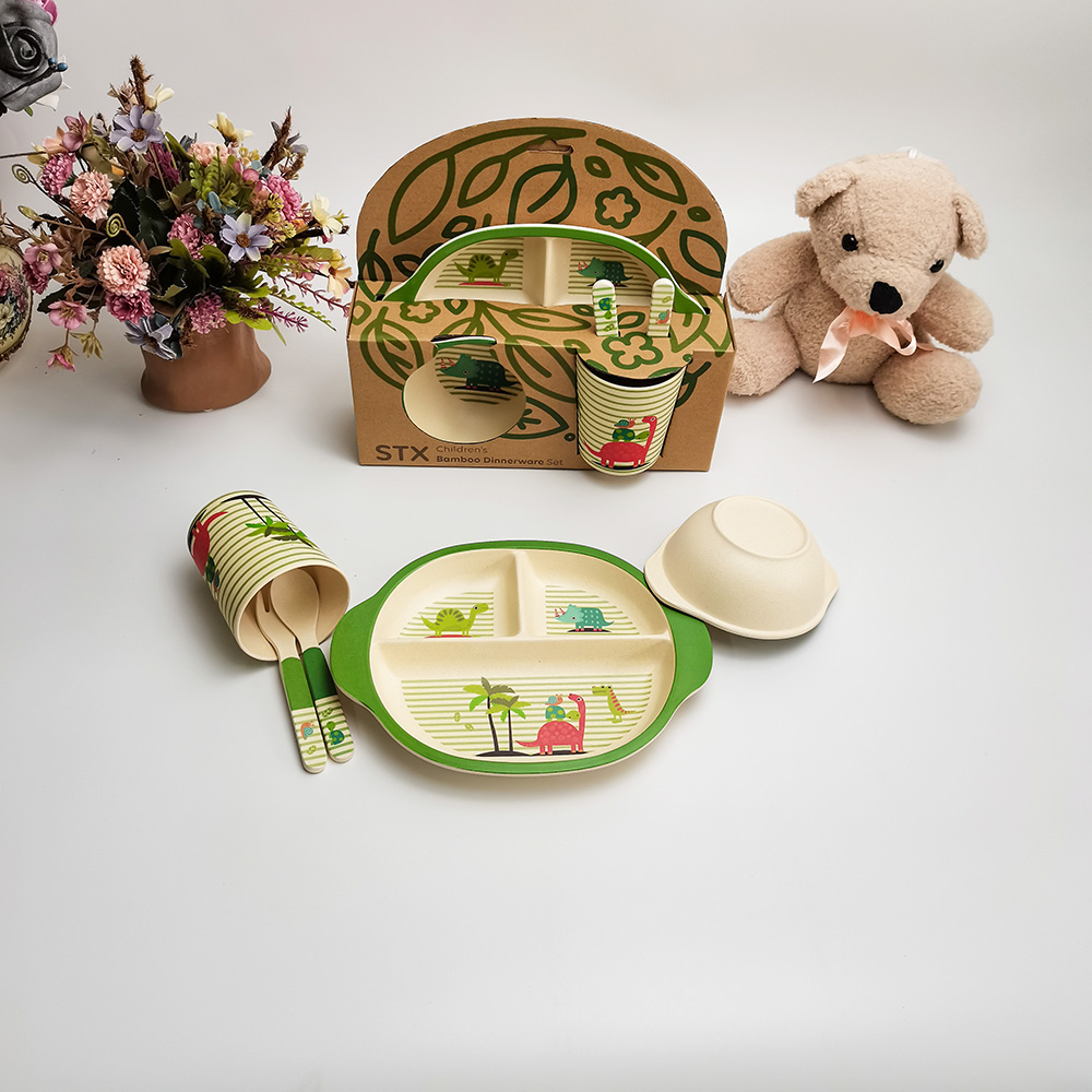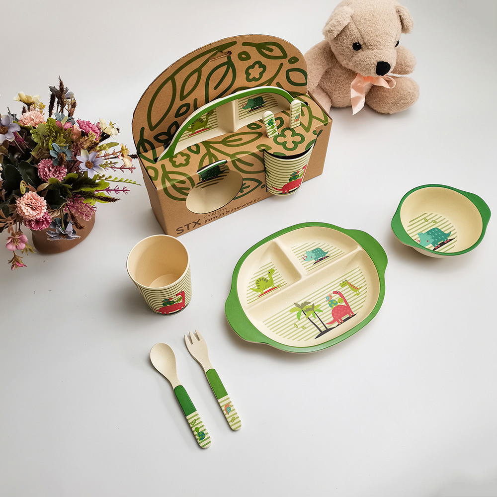 Domicile / Produit / Vaisselle pour enfants / Ensemble de vaisselle pour enfants en fibre de bambou design mignon offre spéciale avec cuillère et bol