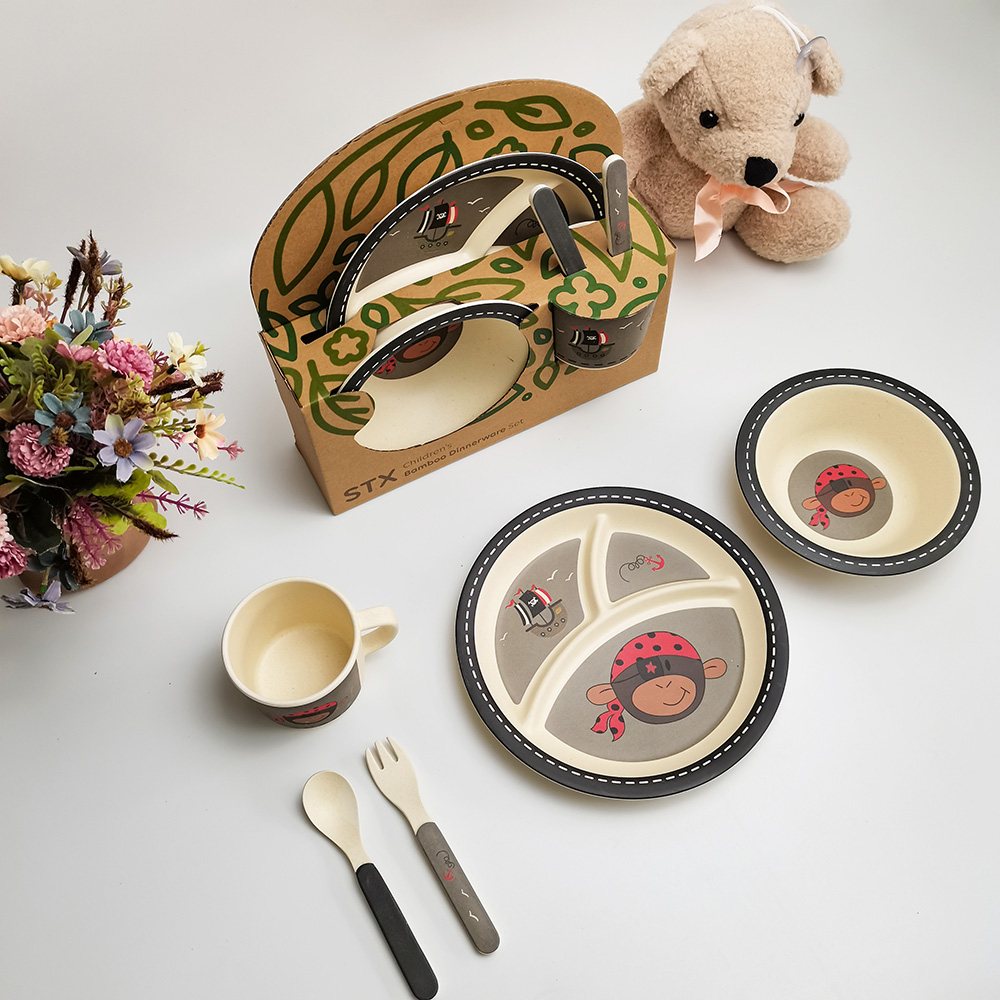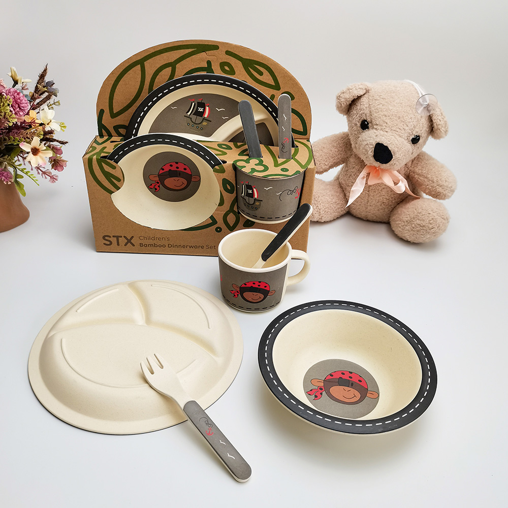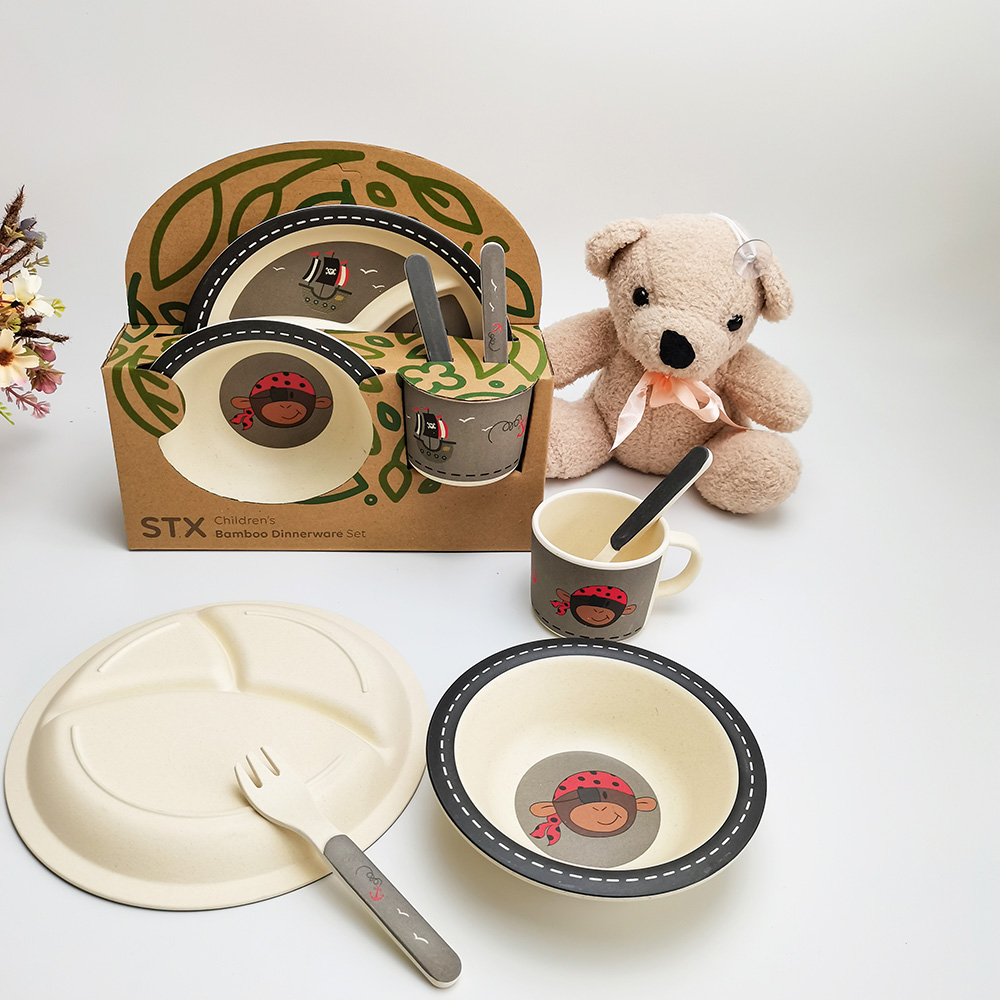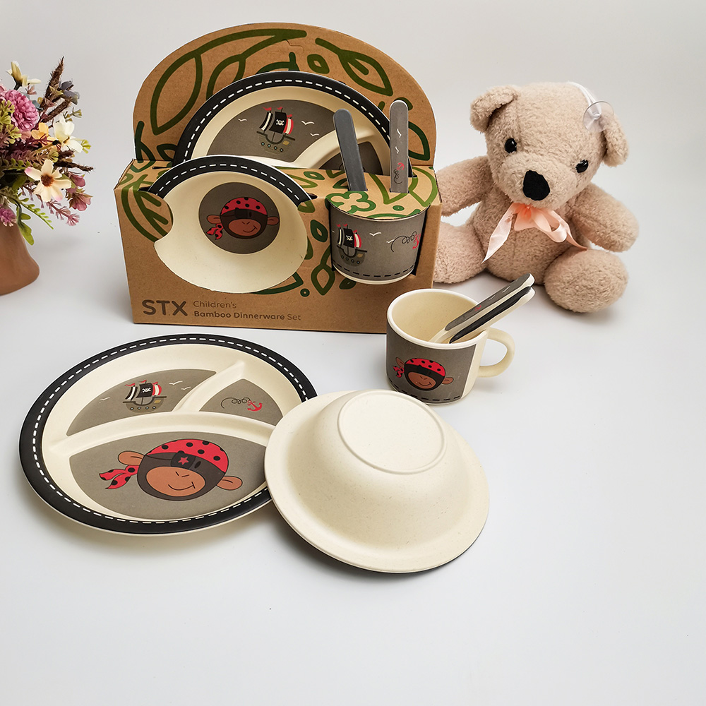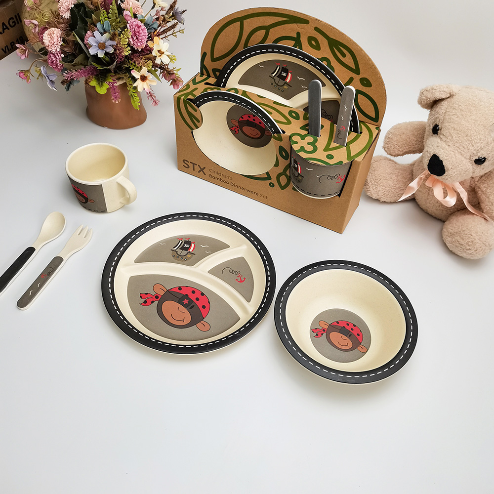 Domicile / Produit / Vaisselle pour enfants / Ensemble de dîner de vaisselle des enfants de bébé de fibre de bambou d'impression animale de logo d'OEM